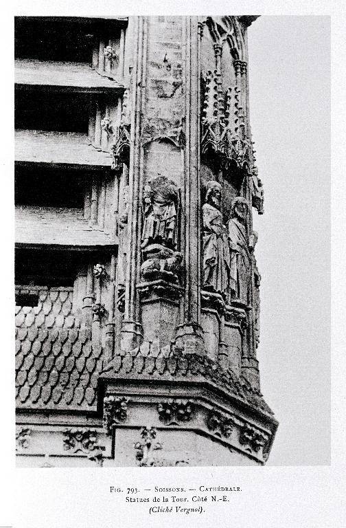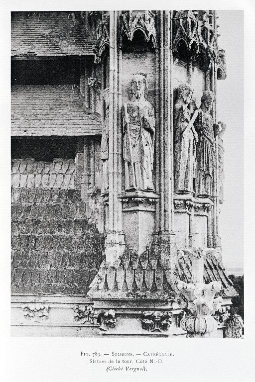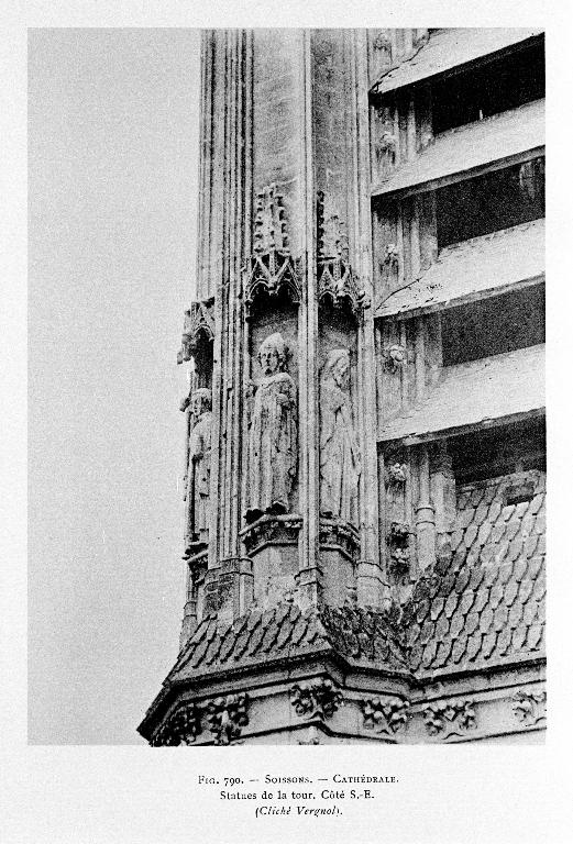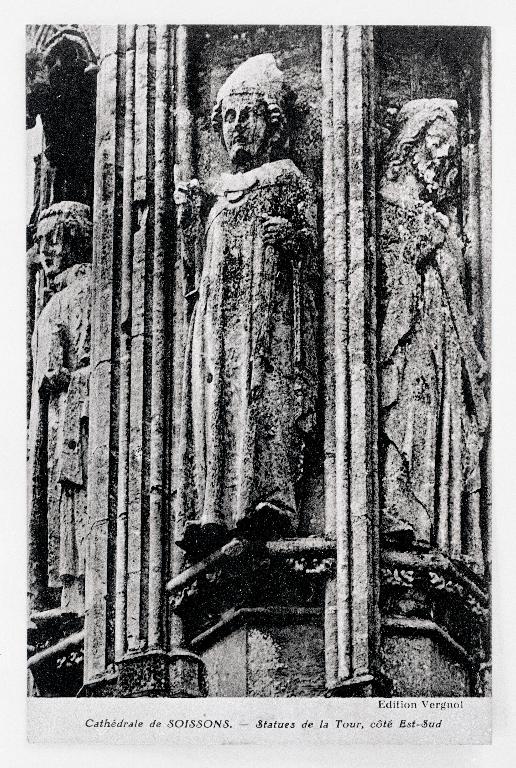 BLANCHARD, Fernand. La statuaire de la tour sud de la cathédrale de Soissons. In CONGRÈS ARCHÉOLOGIQUE DE FRANCE. LXXVIIIe session tenue à Reims en 1911, par la Société française d'Archéologie. T. 2. Procès-verbaux et Mémoires. Paris : A. Picard, Caen : H. Delesques, 1912, p. 317-323.