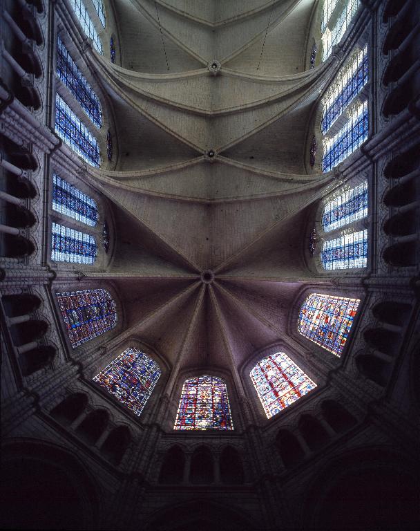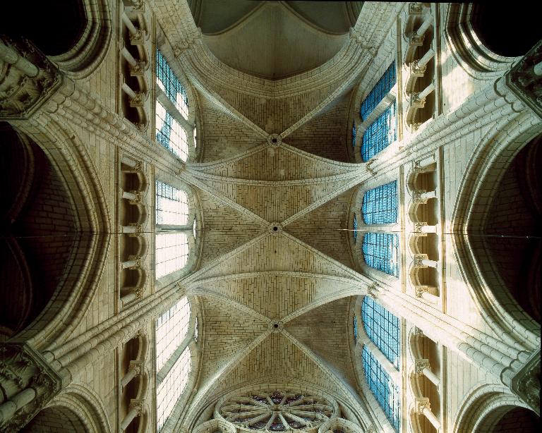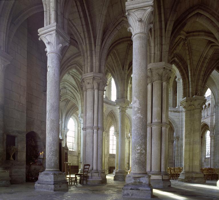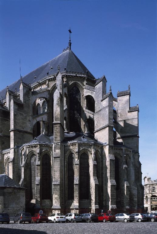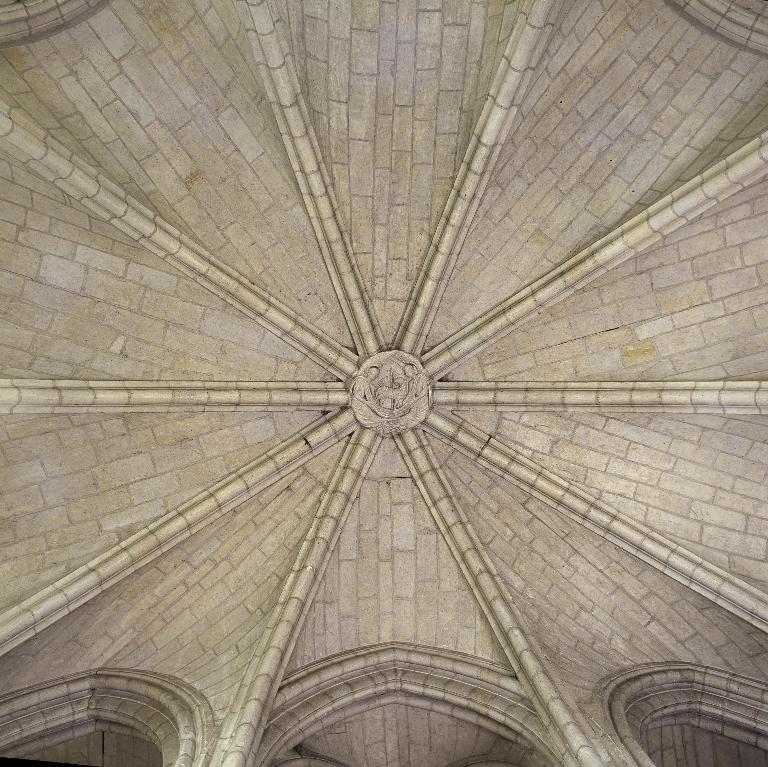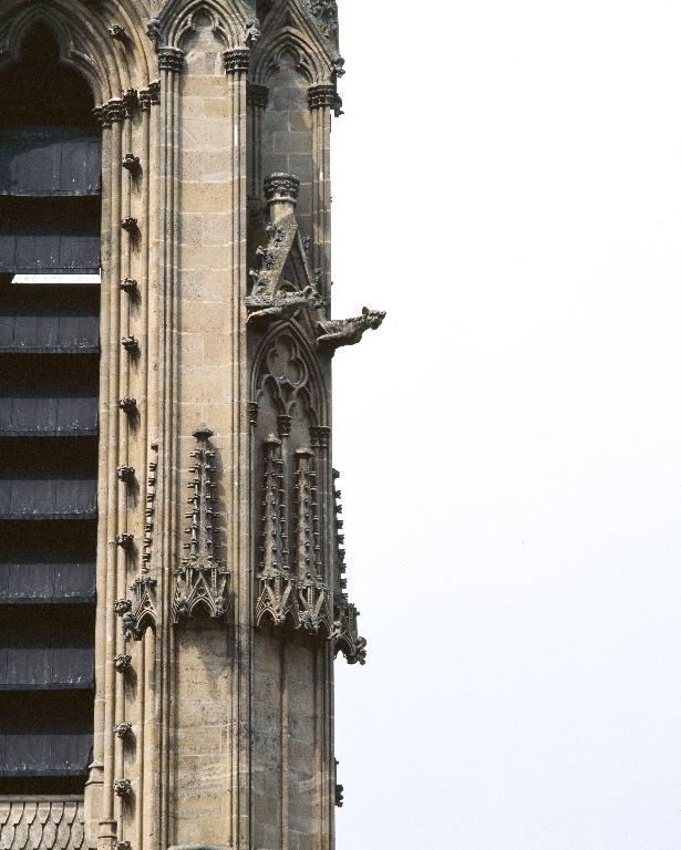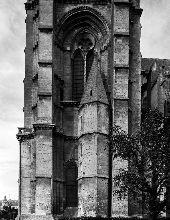 Enfin, le bras nord du transept est rebâti dans le quatrième quart du 13e siècle, comme en témoigne l’analyse dendrochronologique de sa charpente, qui propose les dates extrêmes 1282-1287 pour l’abattage des arbres. L’édification de la chapelle du Sépulcre, adossée à l’extérieur du mur-pignon nord de ce croisillon, appartient à cette campagne de travaux. Fondée en 1276 par le chanoine Renaud de Chézy, cette chapelle a été détruite au cours de la Révolution. Il n’en subsiste actuellement que les élégants remplages aveugles juxtaposés à l’extérieur du mur nord du transept.