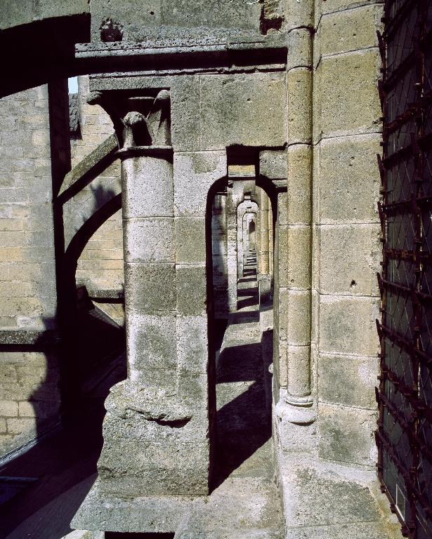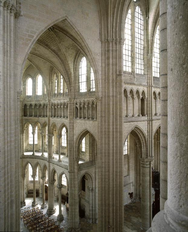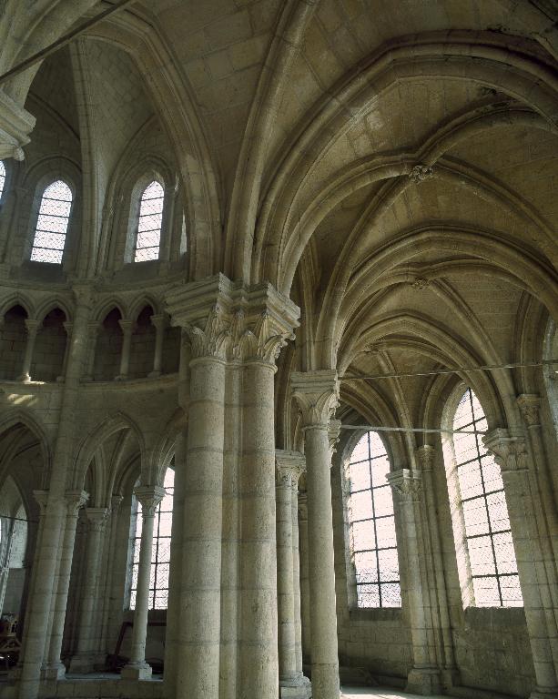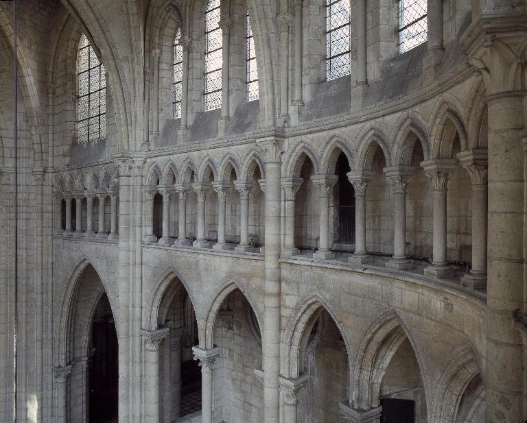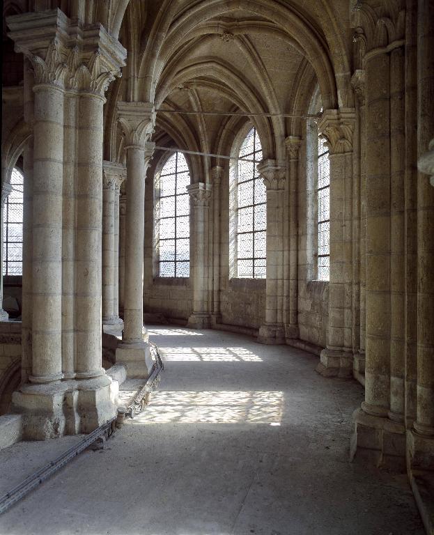Jusqu'au milieu du 19e siècle, le monument profite d'un entretien régulier et réfléchi, effectué sous la direction des architectes du département ou de l'arrondissement de Soissons. Ces ouvrages indispensables alternent parfois avec des opérations plus importantes, telle la modification de la toiture des cinq chapelles absidales en 1830-1831, voire d'envergure, comme la substitution progressive de l'ardoise à la tuile sur le comble de la nef dans le courant des années 1830. Mais, face aux besoins, le gouvernement ne peut encore approuver des travaux d'embellissement et repousse en 1847 un projet de vitraux figurés, "sans nécessité réelle".