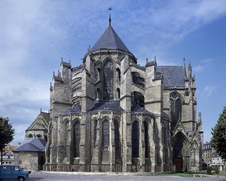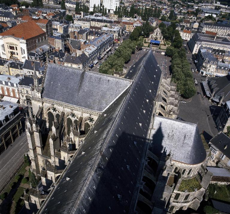 Pour effectuer les réparations les plus urgentes, l'évêque Charles de Roucy (1557-1585) abandonne le revenu entier de l'évêché pendant trois ans et le chapitre est contraint de vendre des seigneuries, terres et immeubles, voire d'emprunter. En dépit de ces sacrifices, de nombreuses années sont nécessaires pour rendre à l'église sa couverture, clore ses baies - même avec économie -, et redonner à l’intérieur sa décence.