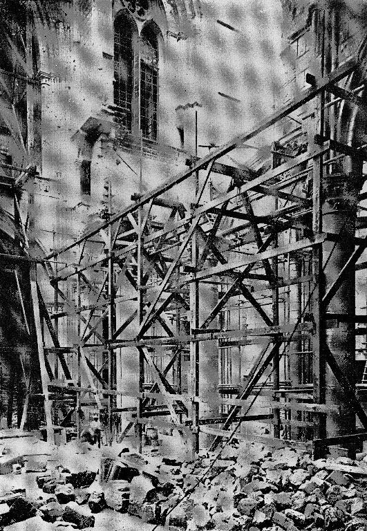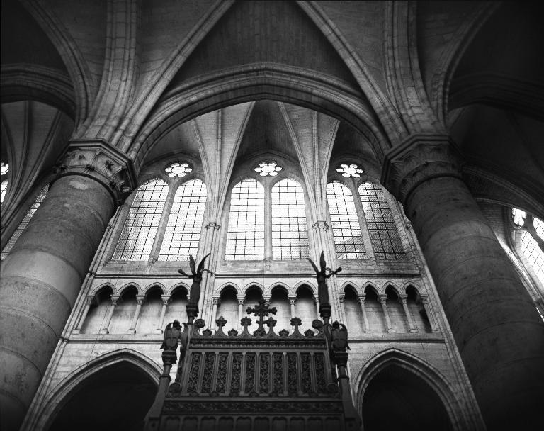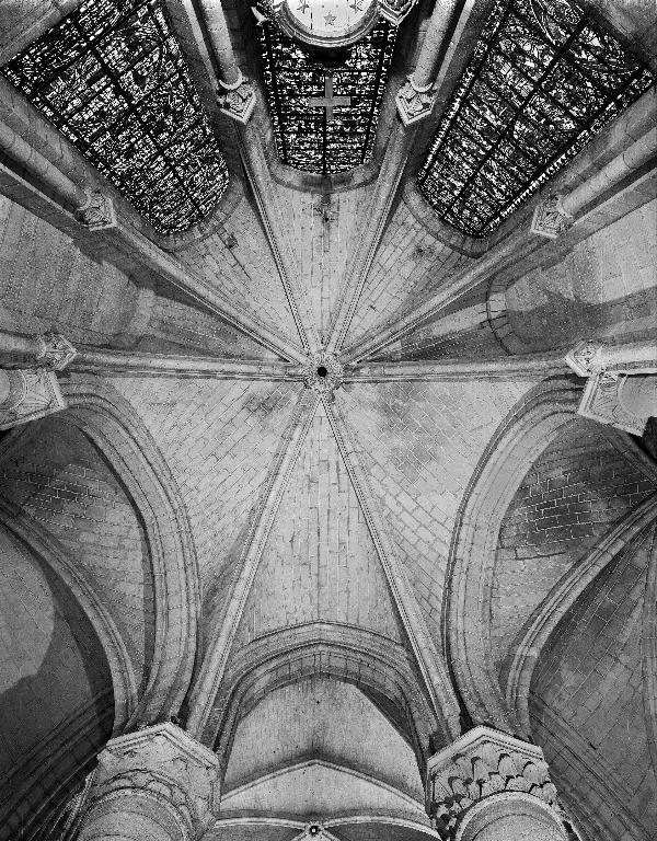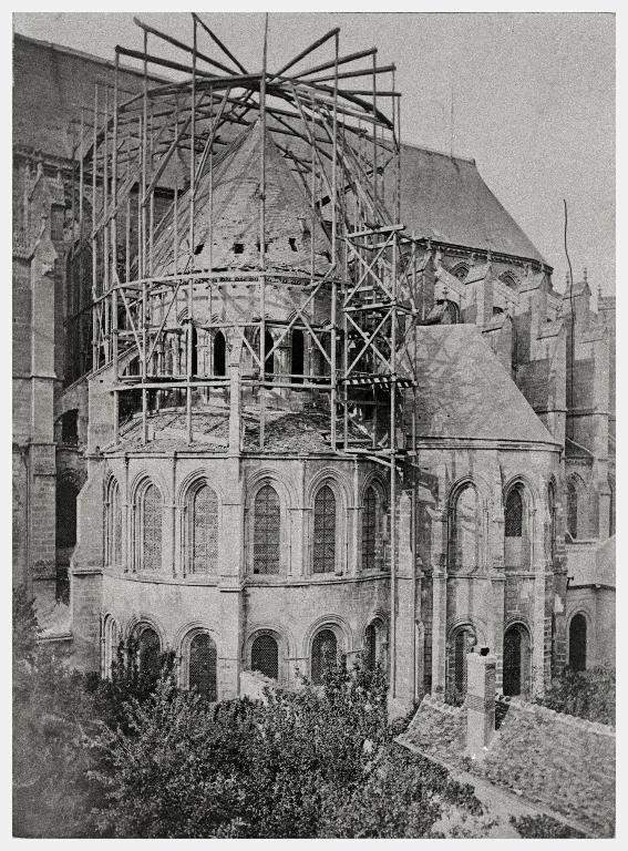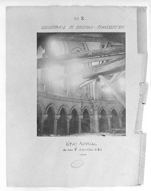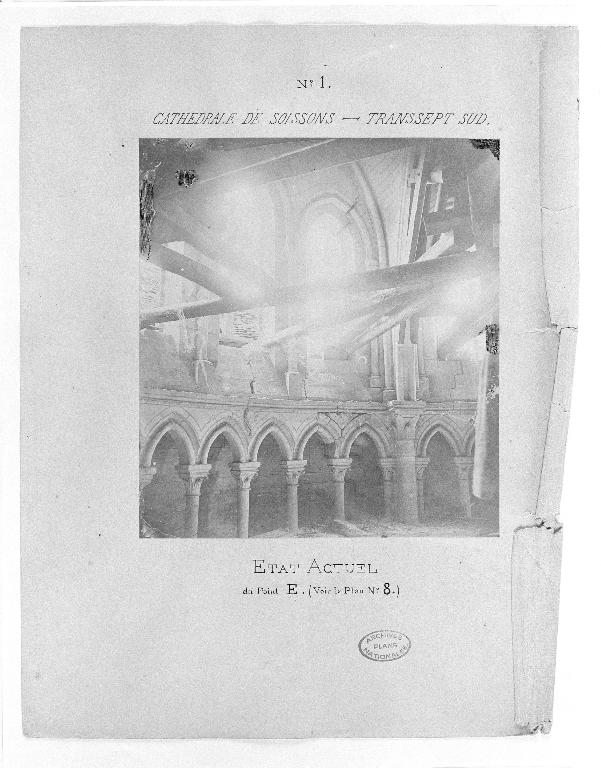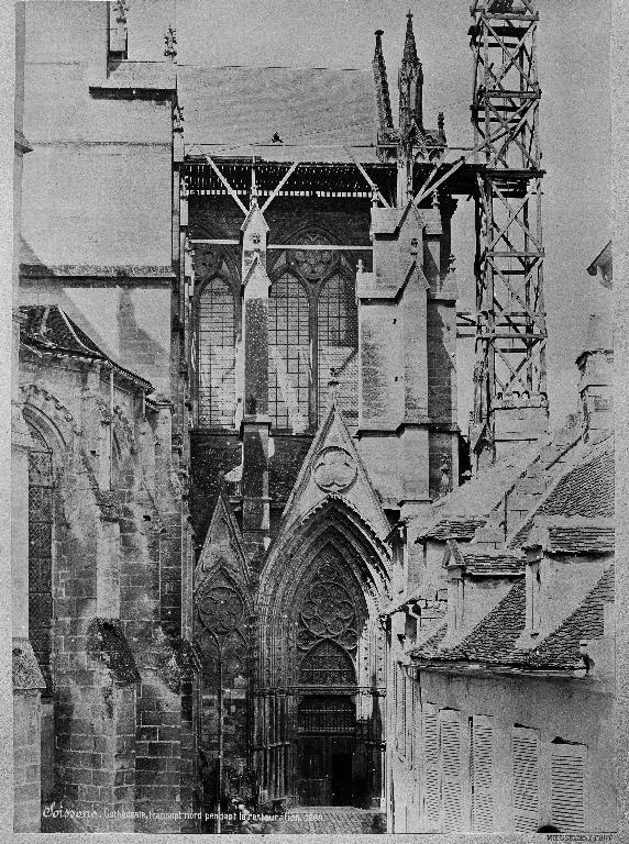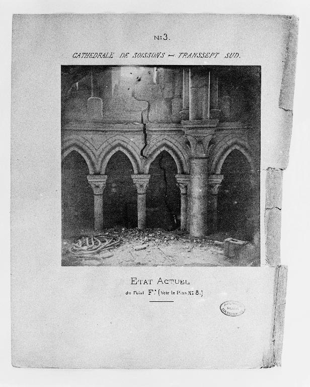Soissons. Cathédrale, transept nord pendant la restauration, photographie par Médéric Mieusement, photographe, 1888 (coll. part.).