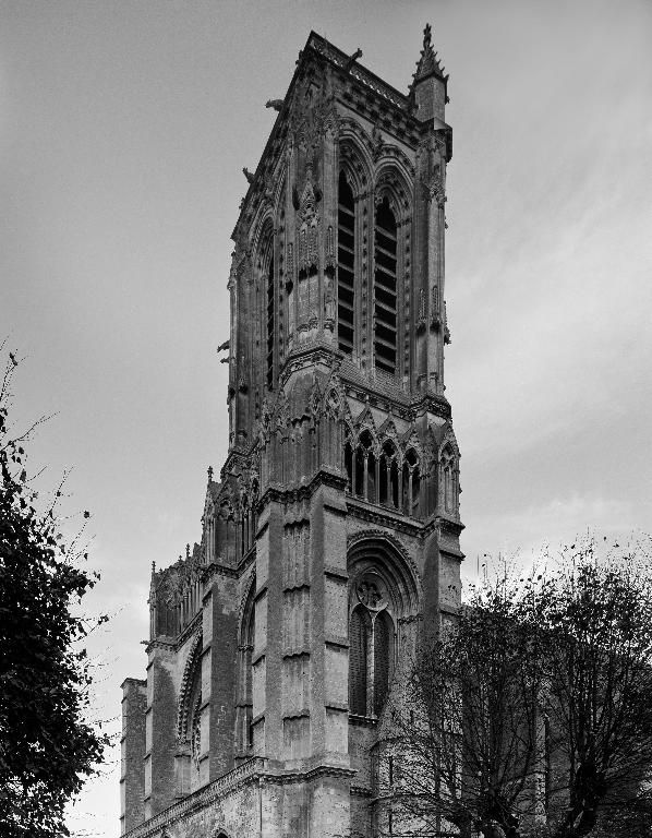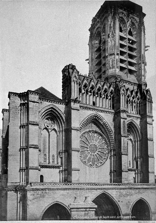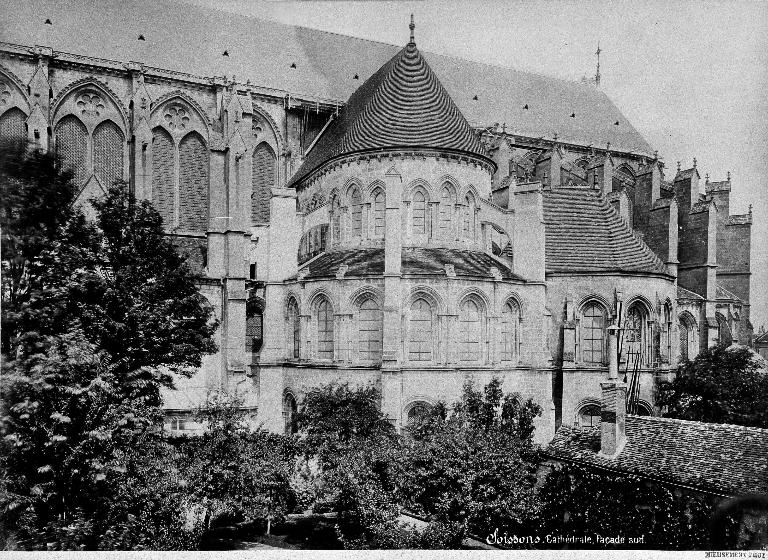 Soissons. Cathédrale, clocher et ancien évêché, photographie par Médéric Mieusement, photographe, [vers 1890] (AMH Amiens).
