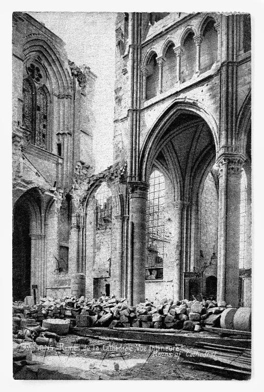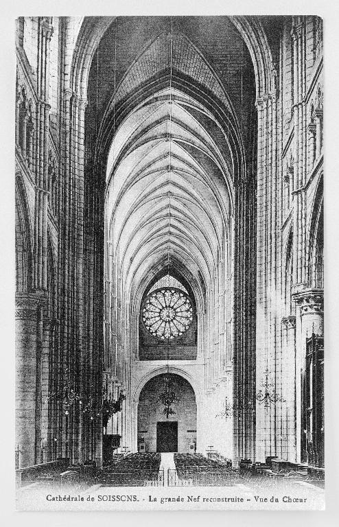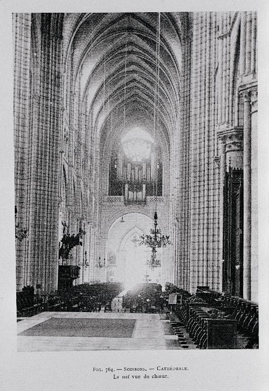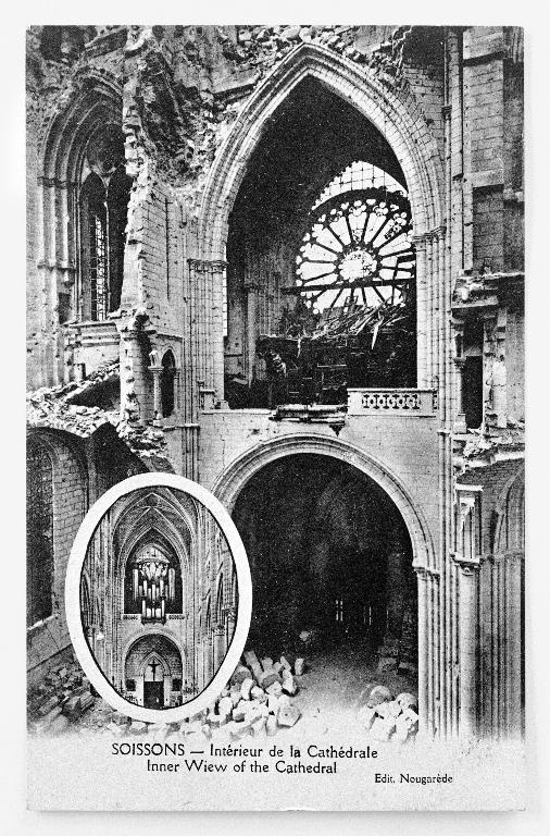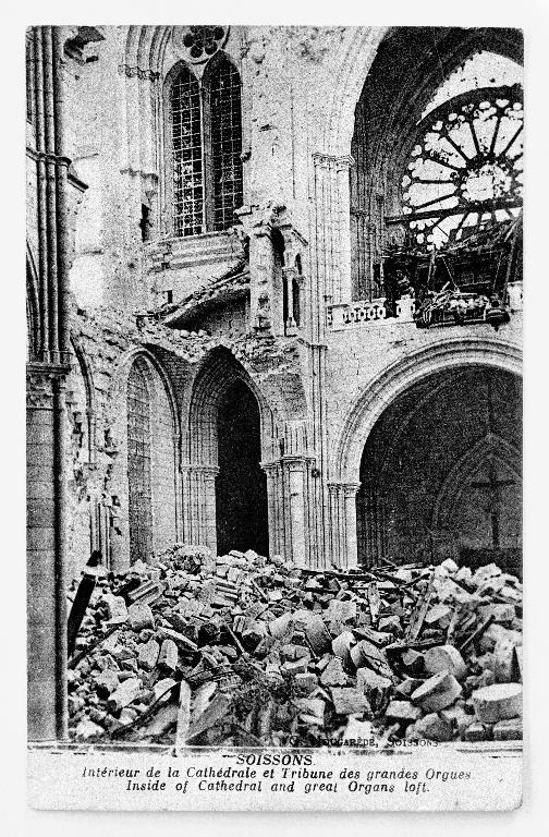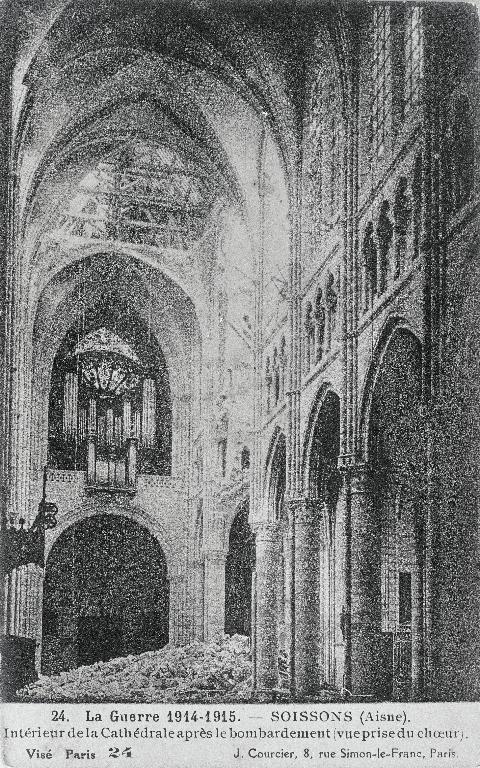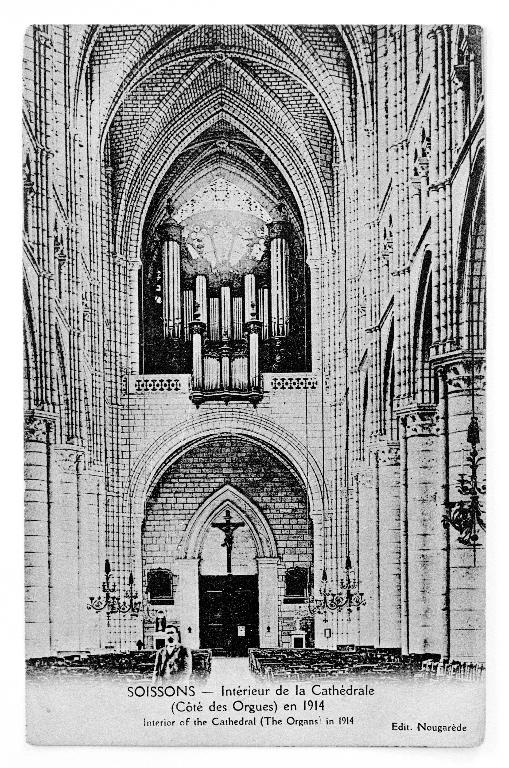 Intérieur de la Cathédrale et Tribune des grandes Orgues, carte postale, G. Nougarède, éditeur à Soissons, [vers 1918] (A Evêché Soissons : 4 Y Soissons-Cathédrale).