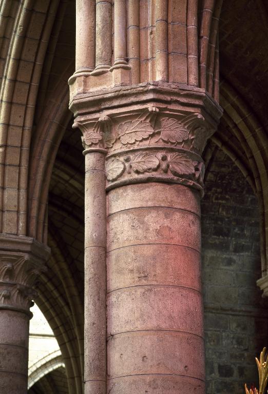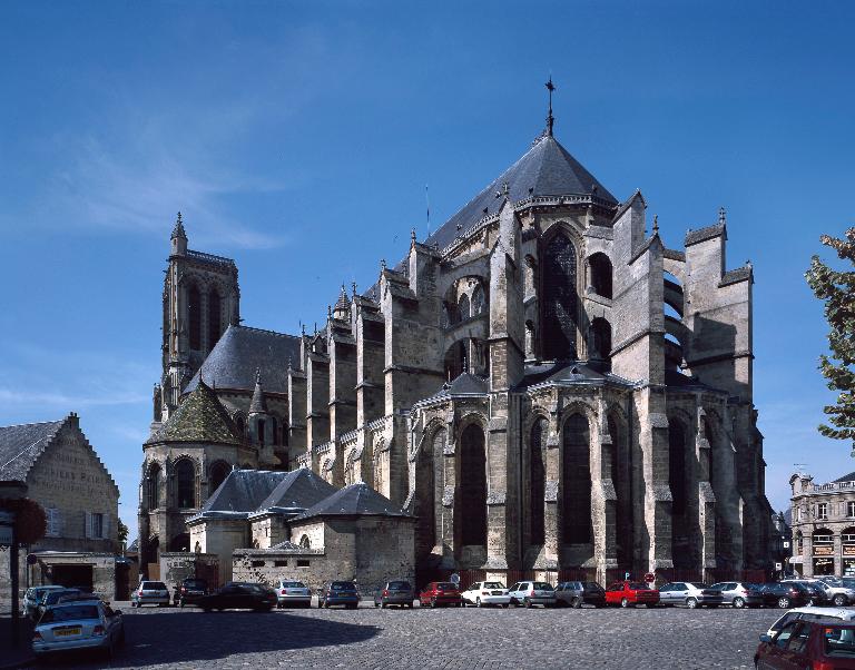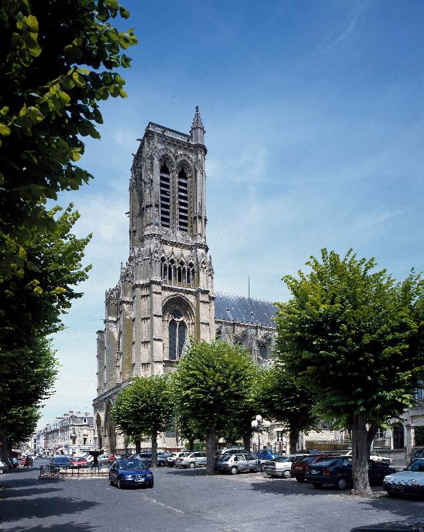 La rareté et l’imprécision des sources ne permettent donc pas de connaître le passé de la cathédrale dans le courant du premier millénaire. Il faut attendre le 12e siècle pour que la documentation fasse allusion à une vaste campagne de travaux, datable du milieu du siècle. Ainsi, l’évêque Anscoul de Pierrefonds (1152-1158) lègue quatre chevaux pour aider à la construction de la tour-clocher. La découverte d’un chapiteau de cette période sous les grandes arcades de la nef en 1924, semble concorder avec le témoignage des archives, même si aucune autre trace de la précédente cathédrale n’a été retrouvée lors des travaux de restauration consécutifs à la Grande Guerre.
