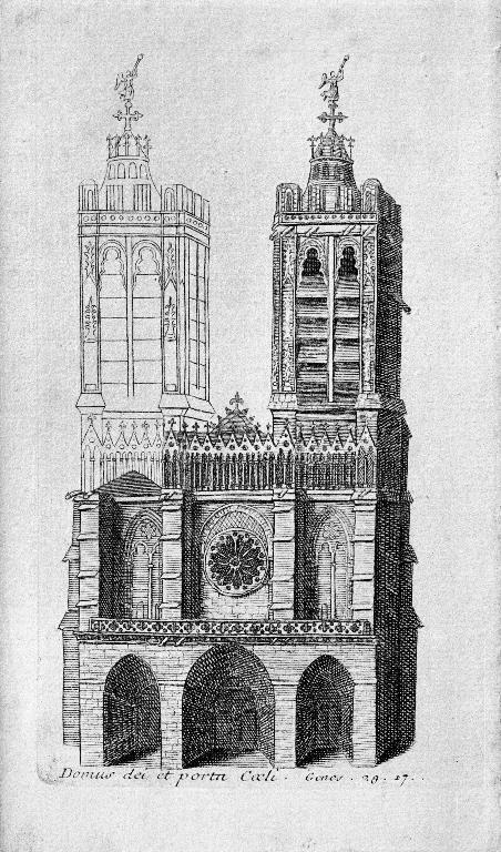 Aisne. Cathédrale de Soissons, dessin aquarellé par Tavernier de Jonquières, dessinateur, [vers 1780] (BnF : Destailleur, Province, t. 5, 1243).