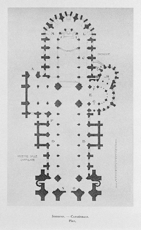 Plan de la Cathédrale de Soissons. Picardie, dessin par Alphonse Baillargé, gravure par Auguste Hibon, [vers 1840]. In : TAYLOR, Justin, NODIER, Charles, CAILLEUX, Alphonse de. Voyages pittoresques et romantiques dans l'ancienne France. Picardie. Paris : Firmin Didot frères, 3 volumes, 1835-1845.