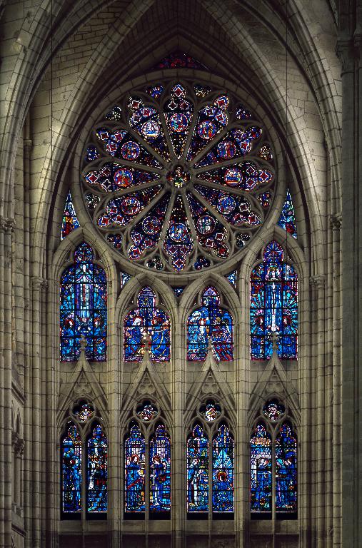 L'épiscopat de Mgr Duval (1890-1897), évêque déterminé et fort investi dans l'embellissement de son église, correspond au débadigeonnage total du bâtiment (1890-1893), malheureusement effectué à l’aide d’outils métalliques qui abîment la surface de la pierre, et à la pose de verrières figurées, créées par Félix Gaudin pour les chapelles absidales. Quand Émile Brunet endosse en 1904 la responsabilité d'un édifice en très bon état de conservation et au mobilier renouvelé, il ne lui reste plus, en apparence, qu'à faire réaliser quelques réparations aux tours et au massif de façade.