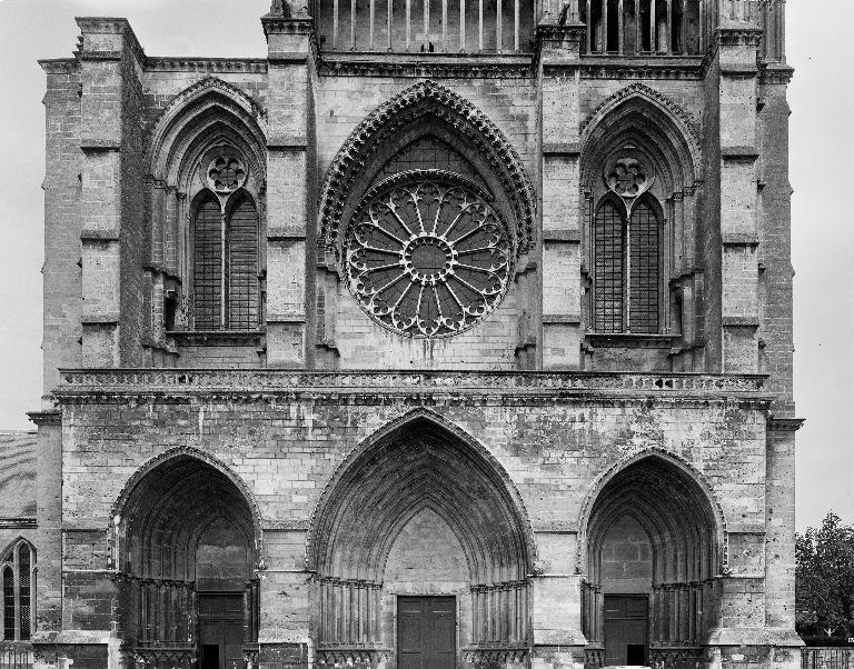 L’édification de la nef et du massif de façade occupe une grande partie du 13e siècle, trahissant un essoufflement de l’élan. Tandis que la nef et la moitié inférieure du massif de façade sont probablement achevées vers 1240, il faut attendre le troisième quart du 13e siècle pour que soit réalisée la galerie haute de la façade, et le début du 14e siècle pour que soient sculptées les statues du clocher.