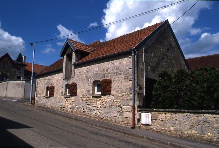 La maison, longue de quatre travées, est construite en retrait de la rue, parallèlement à celle-ci. Une porte sous l'escalier et trois fenêtres dans le soubassement attestent la présence d'une cave. Les murs sont constitués d'un blocage de moellons à joints pleins blancs. Les chaînes d'angle ainsi que les ouvertures sont en pierre de taille. La corniche est pourvue d'une moulure à plusieurs cavets. Le toit à longs pans en ardoise est agrémenté de deux lucarnes à bâtière, dont une à fenêtre pendante. Longue de trois travées, la grange est bâtie directement sur la rue, parallèlement au logis. Les moellons utilisés ne semblent pas avoir été ébousinés, d'où cette couleur jaunâtre que la maison ne possède pas. Les chaînes d'angle sont en pierre de taille. Une lucarne à foin à fenêtre pendante surmonte la baie centrale.