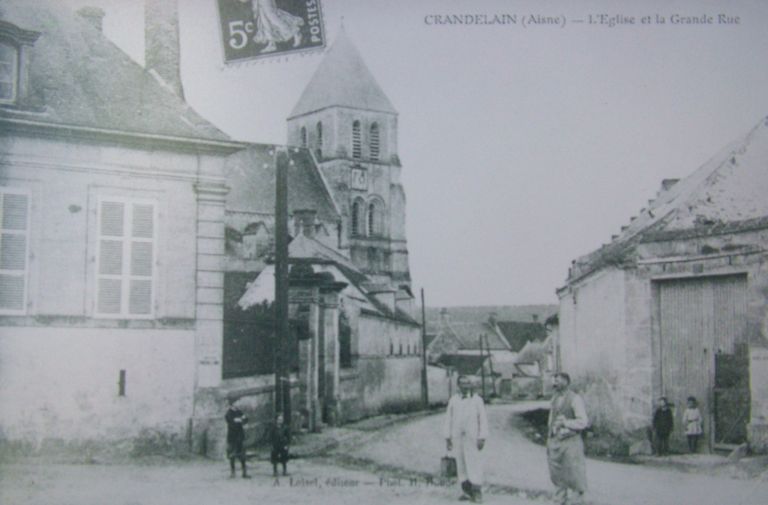 Crandelain (Aisne) - L'Eglise et la grande rue, carte postale, [s.n.], début 20e siècle (AP).