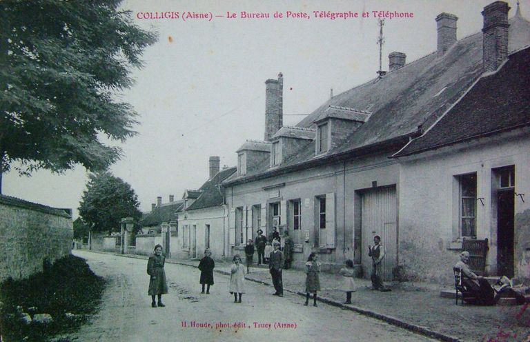 Colligis (Aisne) - Le bureau de poste, télégraphe et téléphone, carte postale, par H. Houde photographe, début 20e siècle (AP).