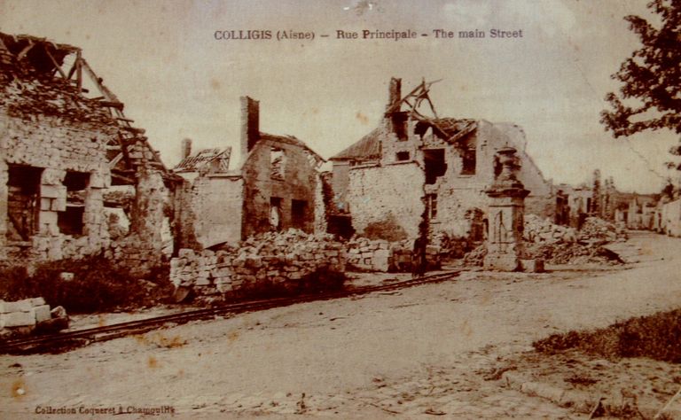 Colligis (Aisne) - Rue principale, carte postale, [s.n.], 1918 (AC Colligis).