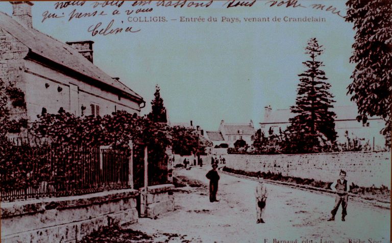 Colligis (Aisne) - Entrée du pays venant de Crandelain, carte postale, [s.n.], début 20e siècle (AP).