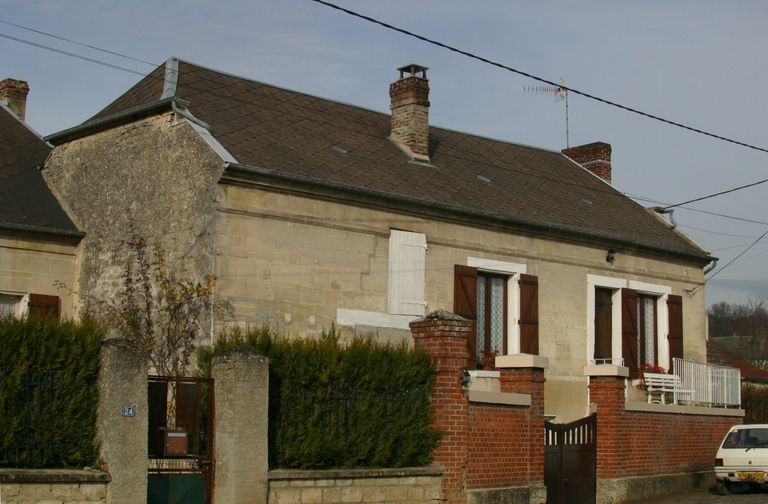 Toutes les maisons de Colligis-Crandelain ont été construites dès 1921. La répartition irrégulière des baies se concentrant sur la droite du bâtiment atteste la présence d´une grange dans la partie opposée, sous le même toit que le logis. Le rez-de-chaussée surélevé surmontant un étage de soubassement pourrait témoigner de l'existence d'une cave de vendangeoir.