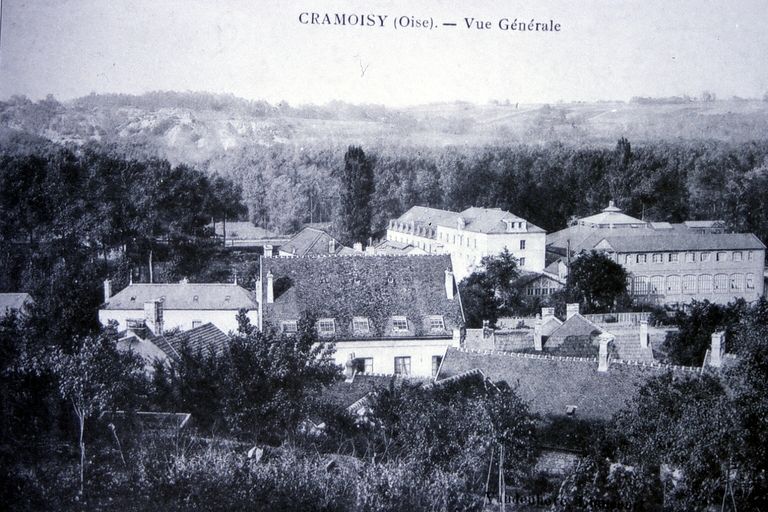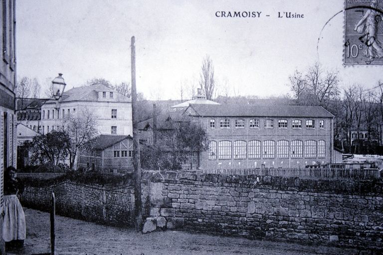 En 1810, deux moulins, établis en vis-à-vis, sont mentionnés comme existants "de temps immémoriaux". Ils dépendaient tous deux de la baronnie de Mello, qui possédait sous l'Ancien Régime le fief, dit du "Château Sarazin", aujourd'hui dénommé "Le château". Le premier moulin, établi au nord de la dérivation du Thérain est à l'origine un moulin blé, converti en 1819 en moulin à huile. Celui qui lui fait face est également à usage de mouture de blé et porte l'appellation de Petit Moulin. A partir de 1825, une partie de la force hydraulique est louée à un certain Lecer qui installe une fabrique de broches pour l'industrie textile. Malheureusement, le décès de l'industriel l'année suivante provoque l'arrêt brutal de la production. L'activité est remplacée en mai 1828 par un atelier de coutellerie, spécialisé dans la fabrication de rasoirs et de couteaux de table, dirigé par Pradier. En 1833, Jean-Baptiste Lefèvre achète les bâtiments du Petit Moulin pour y installer une filature de laine peignée. A partir du mois d'octobre 1833, il fait construire un bâtiment de 33 m de long sur 10 m de large, destiné à abriter son activité. Le développement industriel par l'énergie hydraulique provoque de vives contestations de la part de Jeanty, propriétaire de l'autre moulin, dont la force est réduite. Empêché de poursuivre son activité avec une énergie suffisante, Jeanty décide de vendre son moulin à Lefèvre en 1834. Ce dernier dispose ainsi de possibilités supplémentaires d'extensions. Toutefois, l'industriel fait faillite en 1838. Joseph Ulrich Hindenbourg, industriel parisien, rachète la filature de Cramoisy en décembre 1838 et la complète en 1841 d'un nouvel atelier, construit dans le prolongement du précédant. Après le décès d'Hindenbourg, le 22 novembre 1853, l'usine est rachetée par Achille Seillières, membre du Conseil général des Manufactures et baron de Mello, suivant l'acte de vente du 26 septembre 1854. Son fils, Alexandre Seillière prendra la succession de la filature à partir de 1888. Il sera, entre autre l'artisan du raccordement du site industriel au réseau ferroviaire en 1892. En 1899, Seillières vend l'usine à la Société des Anciens établissements Parvillée frères, créée pour l'occasion quelques mois plus tôt. Cette entreprise est spécialisée dans la fabrication de porcelaines industrielles et s'inscrit dans l'héritage de l'entreprise constituée à Paris (rue de Caulaincourt) dans la première moitié du 19e siècle par l'architecte céramiste parisien Léon Parvillée, et poursuivie par ses deux fils, Achille et Louis. Si le site parisien conserve la fabrication de porcelaine architecturale décorative, à Cramoisy, l'entreprise se lance dans le marché prometteur de la diffusion électrique, avec la fabrication d'isolateurs électriques en porcelaine. Le site de Cramoisy n'est pas choisi au hasard, puisque c'est à Creil, ville voisine, que fut réalisée l'une des premières expériences françaises de transport à distance de l'électricité en 1884 et 1885. Les bâtiments de l'ancienne filature ne sont pas adaptés aux nouvelles exigences techniques et fonctionnelles de la nouvelle activité, mais Jacquet, président, et son collaborateur Labecque rachètent pour la société le domaine de l'ancien château sur lequel ils développent plusieurs autres bâtiments, dont les grands fours de cuisson à seize fours à feu tournants alimentés par gazogène et abrités par un vaste bâtiment à structure métallique. En 1926, le grand atelier de montage est allongé de quatorze travées supplémentaires et un second four de cuisson est installé à l'arrière sous une grande halle. L'activité de l'usine cesse en 1957, les bâtiments sont rachetés en l'année suivante par Adrien Claude, fabricant de cloisons stratifiées. La société Adclo, qu'il dirige, utilise les bâtiments mais n'apporte pas de modifications notables. Elle dépose le bilan en 1986 et abandonne le site. Le site, laissé en friche jusqu'en 2000, est racheté par une société immobilière, qui envisage de réhabiliter le site en vue d'une réaffectation mixte. En 1825, le Petit Moulin est équipé d'une roue hydraulique verticale de 5,49 m de diamètre. En 1841, Hindenbourg fait installer une machine à vapeur Cavé de 12 ch. provenant de son usine parisienne pour compléter l'énergie fournie par la roue hydraulique. Cette machine est remplacée par une machine à vapeur Farcot de 50 ch en 1865. Après 1900, la roue hydraulique est remplacée par deux turbines, en place. Par ailleurs, en 1901 est installée une chaudière verticale à tubes Fields de 1,021 mètres cubes de capacité et de 13,30 mètres carrés de surface de chauffe, fabriquée par Fichet et Heurtey, ingénieurs constructeurs à Paris (7 rue de Saint-Pétersbourg). Elle est destinée à alimenter un moteur à gaz pauvre. En 1925, l'usine Parvillée emploie 350 ouvriers ; en 1939, 298 ouvriers, et 46 en 1940.