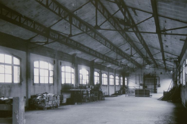 Halle de cuisson à structure métalllique et lanternon.