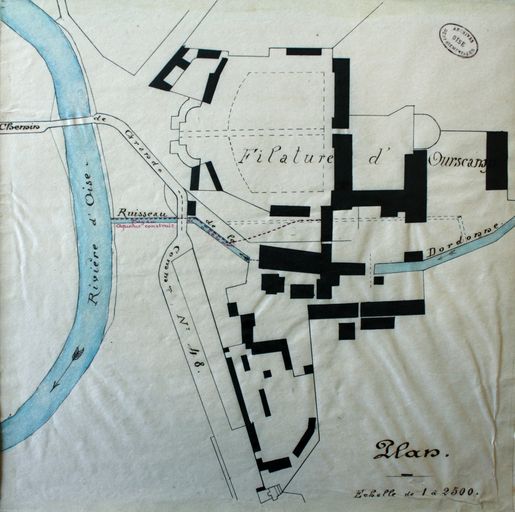 Plan de la filature de coton d'Ourscamp, 1877 (AD Oise ; Mp 2440).