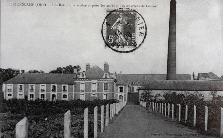 Ecoles et logements d'institutrices de la manufacture d'Ourscamp, 1908 Carte postale (AP / Collection J.-Y. Bonnard).