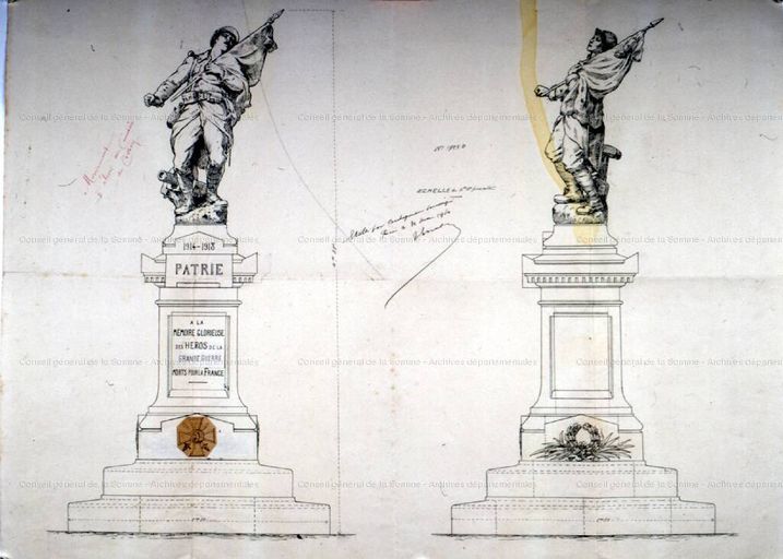 AD Somme. Série R ; 99 R 334 024. Projets de monuments aux morts de la guerre de 1914-1918.