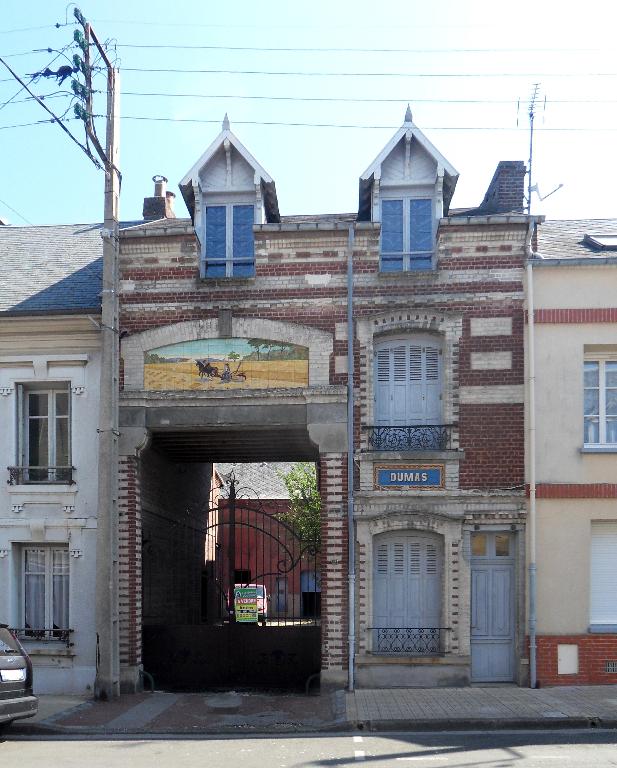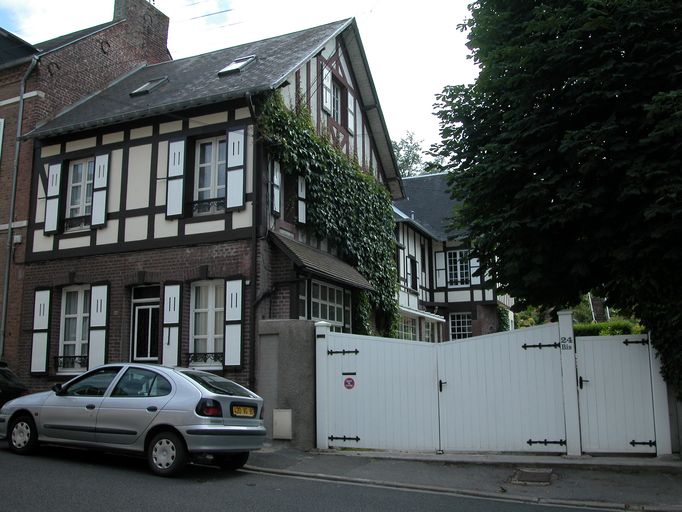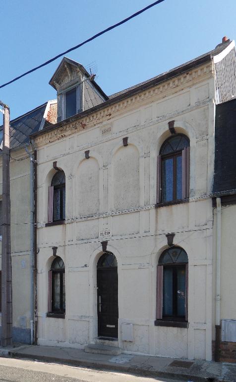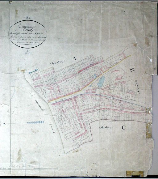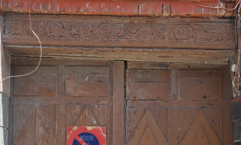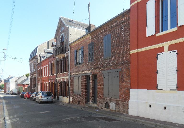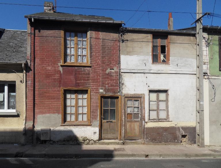 Le bâti ancien persiste le plus souvent le long de ces voies [fig. 26, 27, 28, 33, 34]. Au cours du 19e siècle, la modernisation du bâti, alors construit en torchis et couvert de chaume, a pourtant provoqué la disparition de certains édifices, reconstruits en brique, sur le même parcellaire, avec une cour en fond de parcelle, et bien souvent sur la même surface au sol. Ainsi, la Grande-Rue, qui présente le même type d'implantation de son bâti, à l'aplomb de la rue et entre mitoyens, est-elle composée d'édifices postérieurs aux années 1860 [fig. 50]. Il subsiste cependant des maisons anciennes le long de cette rue, comme la maison Landot, qui possède encore des décors sculptés en façade sur cour [fig. 19, 29 à 32], ou des maisons datées des années 1830 [fig. 53].