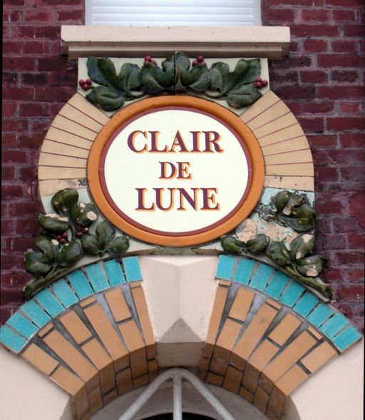 Les carreaux de céramique portant appellation et les cabochons agrémentent ponctuellement la façade. Décor de briques émaillées autour des baies et bandeau de séparation des niveaux. Les garde-corps des balcons sont en bois et représentent des motifs géométriques.