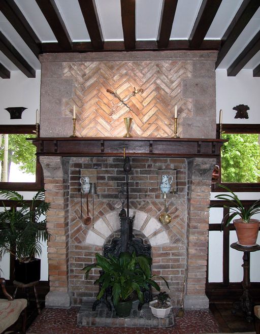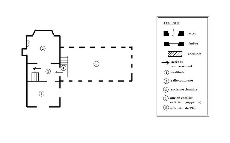 Sculpture sur la façade latérale : bateau et chevalier représentant Guillaume Le Conquérant, avec date 1066, année de son embarquement pour l'Angleterre. Carreaux de céramique sous les fenêtres de la partie la plus ancienne, en façade postérieure.
