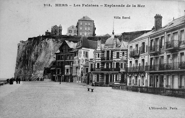 213 - Mers, les falaises, esplanade de la mer, carte postale, par L'Hirondelle éditeur, 1er quart 20e siècle (coll. part.).