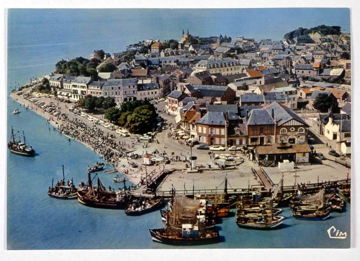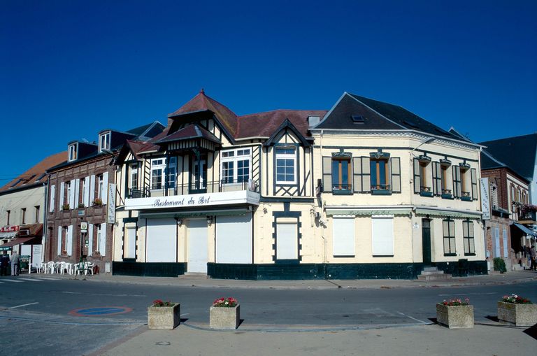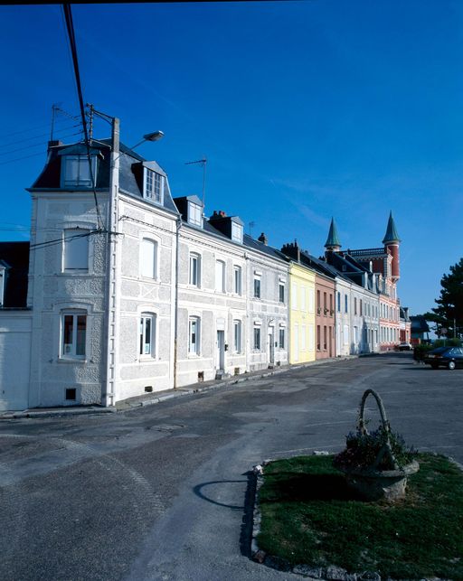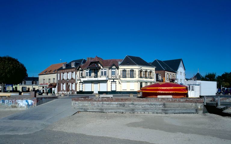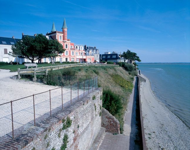 Le port jouxtant le bourg est équipé d'un bassin de chasse à partir de 1862 après le décret impérial du 17 avril 1861 [fig. 6]. Achevé en 1865, il a été creusé par les prisonniers autrichiens de la guerre d´Italie et avait pour but d´entretenir le chenal secondaire. En l'absence de quais, le port était équipé d'estacades en bois [fig. 7 et 8]. Sur l'actuelle place Jeanne-d'Arc, étaient établis des chantiers de construction navale. En 1921, une halle aux poissons est construite entre la première et la seconde estacade, actuellement disparue (AD Somme, 99 O 1324). En 1933, une digue en béton est établie entre le quai Léonard et les estacades en bois (source : A.D. Somme, 99 O 1324). Le village de pêcheurs devient le centre commerçant de la station balnéaire à la suite du développement de l'activité touristico-balnéaire. On aménage les rez-de-chaussée des maisons en commerce, quelques hôtels de voyageurs sont construits. Des villas sont construites le long de la baie de Somme, sur les hauteurs. Mais au cours de la Seconde Guerre mondiale, certaines d'entre elles sont détruites et laissent place actuellement à des immeubles à appartements, comme la villa Rocher des Pins (1985 AS 113) [fig. 21].
