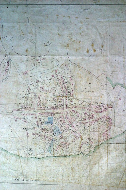 Le cadastre de 1828 montre qu'à cette époque, l'agglomération urbaine reste regroupée 'dans les murs'. Seules quelques habitations sont établies le long de l'actuelle rue Grognet-Gourlain. Au centre de ce quartier trône l'église paroissiale, dotée d'un beffroi.