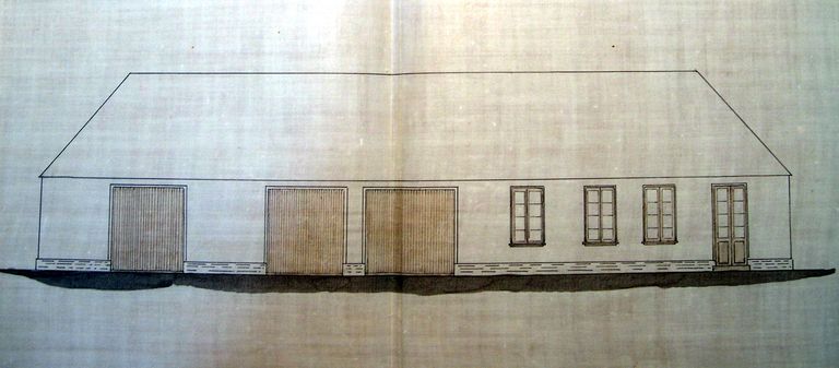 Appropriation d'un bâtiment pour mettre à usage de maison d'école, logement pour l'instituteur et magasin pour les pompes à incendie, dessin par Antoine architecte, 1866 (AD Somme ; 99 O 674).