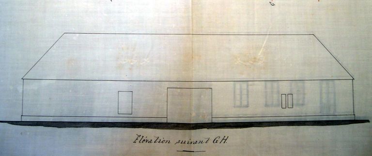 Propriété à acquérir pour servir à usage de maison d'école, logement pour l'instituteur et magasin pour les pompes à incendie, dessin par Antoine architecte, 1866 (AD Somme ; 99 O 674).
