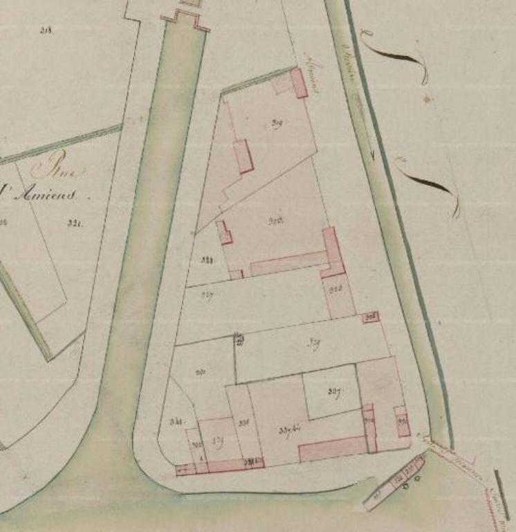 Section G, dite de la ville intra-muros, 1ère feuille, dessin par Desroches géomètre, 1851 (AD Somme ; 3 P 1162).