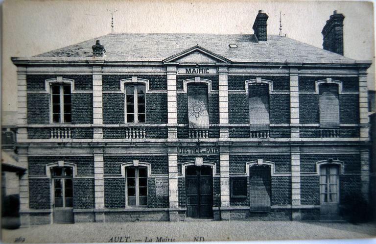 L'actuel hôtel de ville d'Ault remplace l'ancienne école, mairie et justice de paix. Il a été construit entre 1964 et 1971, dates des vues aériennes de l'IGN.