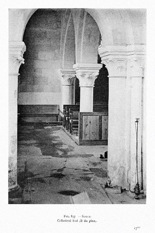 SOUCY. Collatéral Sud, impr. photoméc., par Étienne Moreau-Nélaton, photographe, 1913. In : MOREAU-NÉLATON, Étienne. Les Églises de chez nous. Arrondissement de Soissons. Paris : H. Laurens, 1914, t. 3, fig. 837.