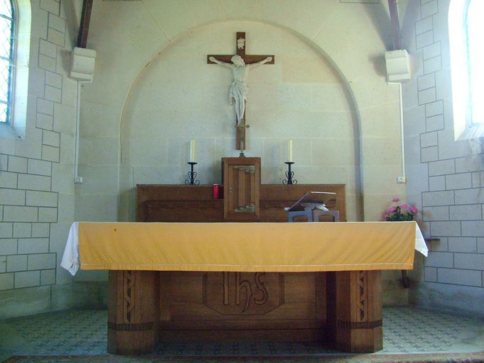 Seuls les fonts baptismaux du 13e siècle ont survécu à la destruction de l'édifice. Le prêtre ne possédant aucun objet pour assurer le culte, la paroisse demande tout le nécessaire liturgique à l'Oeuvre de secours aux églises des régions dévastées le 14 mars 1920. Elle reçoit alors le 14 décembre de la même année un calice, un ciboire, une croix d'autel et ses chandeliers, une croix de procession, six souches, un bénitier et son goupillon, un encensoir et sa navette, un jeu de canons, des burettes, une sonnette, un baiser de paix ainsi que des ornements liturgiques. Les cloches, fournies par l'entreprise Blanchet, sont bénites le 17 juillet 1932 par le curé de Chamouille, l´abbé Gury. Lors de la Seconde Guerre mondiale, quelques vases sacrés ainsi que la lingerie liturgique furent dérobés.