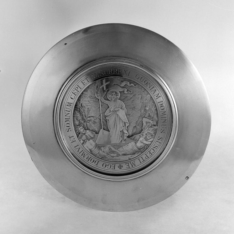 - Plaque funéraire, de Simon Bullandre, marbre noir, 16e siècle. Texte : "Ad lectorem/ Haec est laeta dies et luctu plena sonero improbus infernum sed probus alta petit, visne poli lector penetralia candere celsi.Haereat haec animo nocte dieque tuo. /S.Bullandreus".