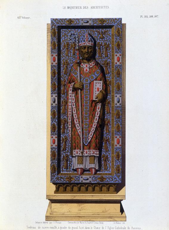 - Statue de saint Nicaise, moine céphalophore, bois polychrome, 16e siècle.