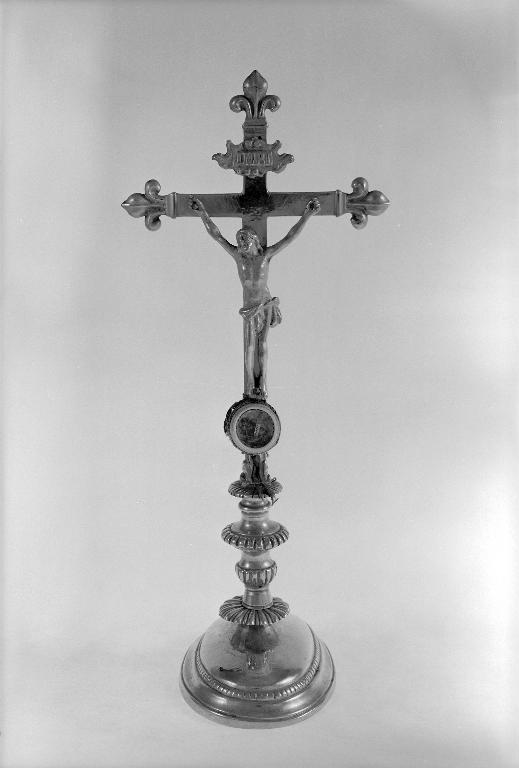 - Socle de croix d'autel, polychrome, 17e siècle.