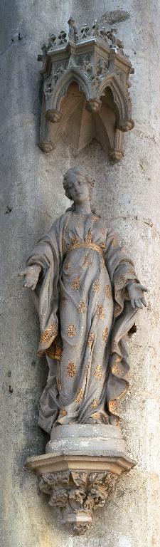 - Statue, Vierge à l'enfant, pierre, 14e siècle.
