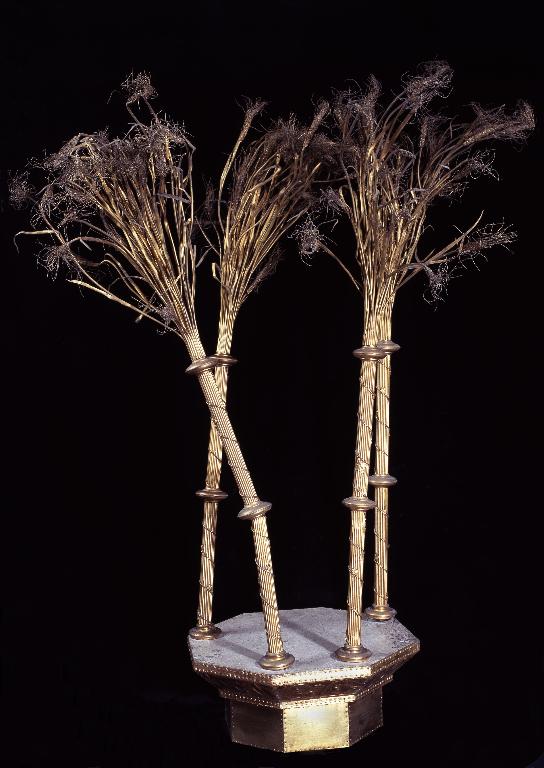 - Bout de balustre (2), bois doré, sur assiette, 18e siècle.