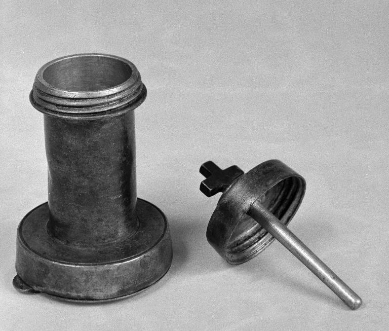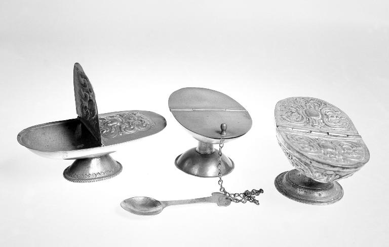 - Etui à calice (2), cuir noir, poignée de laiton, 19e-20e siècle.