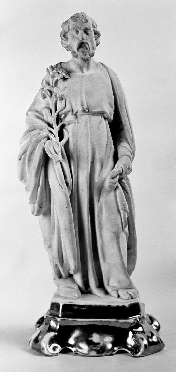 - Statuette, saint Joseph, biscuit, socle doré, VD dans un cartouche sous le pied ; h = 38, la = 14, pr = 13, 19e siècle.
