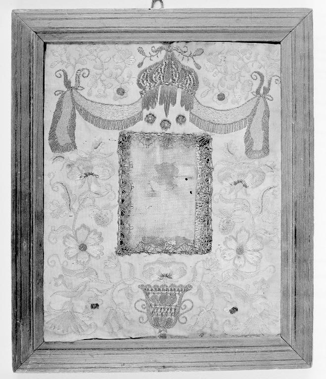 - Couverture des fonts baptismaux, broderie sur canevas, 17e siècle.