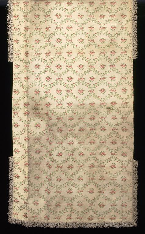 - Dessus d'autel, soie blanche, petits noeuds et feuillages verts, 18e siècle.