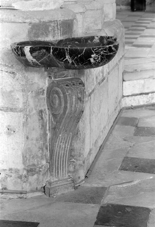 - Plaque funéraire, marbre blanc. Texte : "D.O.M. Hic jacet M. Carolus A??ighel, presbyter bellovacus hujus ecclesiae canonicus per 15? annos obiit octoenarius anno domini 1722 die 18 januarii. Requiescat in pace".