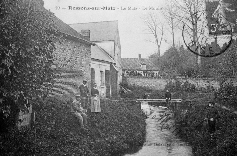 Vue du moulin sur le Matz, partiellement détruit en 1918 (AP).Immatriculation