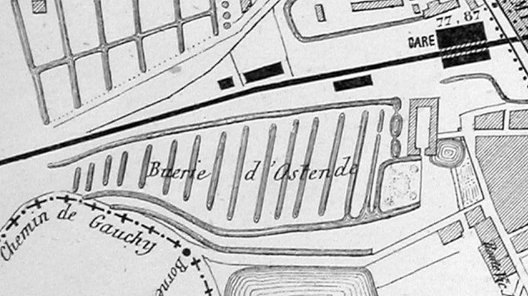 Le site de la buerie d'Ostende en 1860, par Gomart (AC Saint-Quentin).Immatriculation