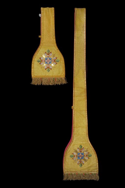 Ornement doré (chape, chasuble, dalmatique, étole, manipule, voile de lutrin, bourse de corporal),