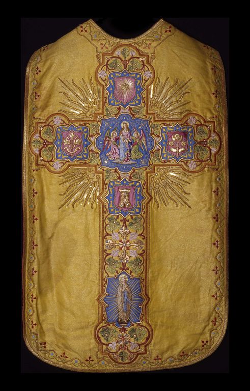 Ornement doré (chape, chasuble, dalmatique, étole, manipule, voile de lutrin, bourse de corporal),