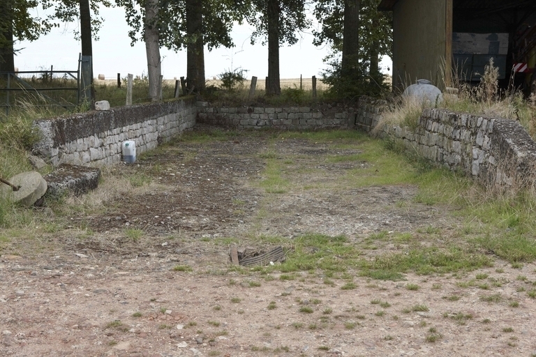 Vue d'un ancien abreuvoir, fosse à fumier ou espace de stockage indéterminé.Immatriculation